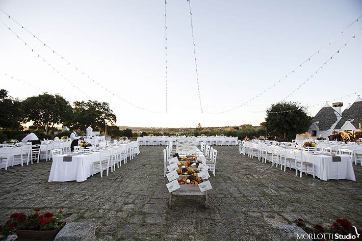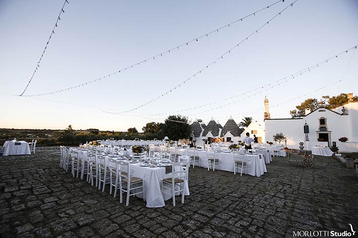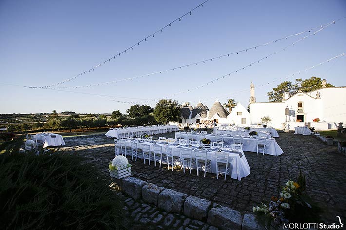 Within this beautiful and unique scenario you can decide to tie the knot, surrounded by your friends and family. The perfect setting for an Italian Wedding. In the Valley of Itria, there is a wedding venue rich in history and tradition of Puglia that could be the perfect frame for your wedding reception. It is an old masseria, located just few steps from Martina Franca, Locorotondo, Alberobello and Noci, where you can enjoy your wedding day surrounded by the delicate nature, caressed by wind and silence.