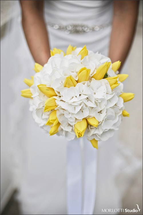 The opted for a simple and happy wedding and they chose the right colours to express this: white and yellow! Summer colours that often remind about Italy warm weather!