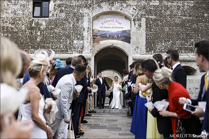 On the wedding day after an exciting getting ready bride and groom tied the knot in wonderful Castle of Otranto in the very heart of Salento countryside.