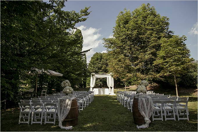We arranged a separate room for bride and groom and their families to sign the ketubah and then we designed a special area in the garden of the relais where the ceremony could be performed.