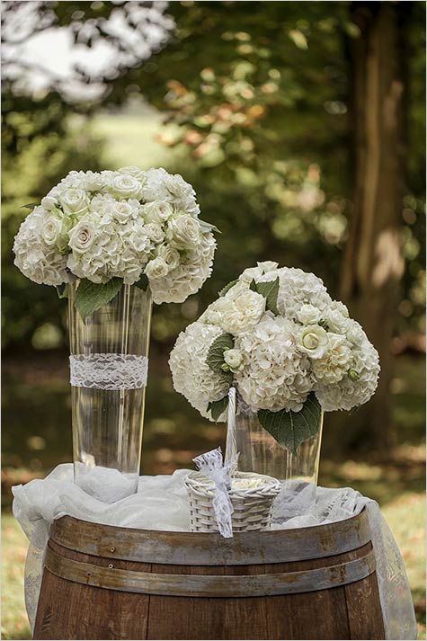 The rest of frame was embellished by white chairs for the guests and two big wine barrels at the beginning of the aisle to give that country chic touch to the setting.