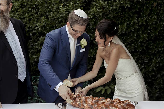 Aperitif was served in the courtyard of the relais where rabbi also blessed bridal Challah bread for bride and groom to break.