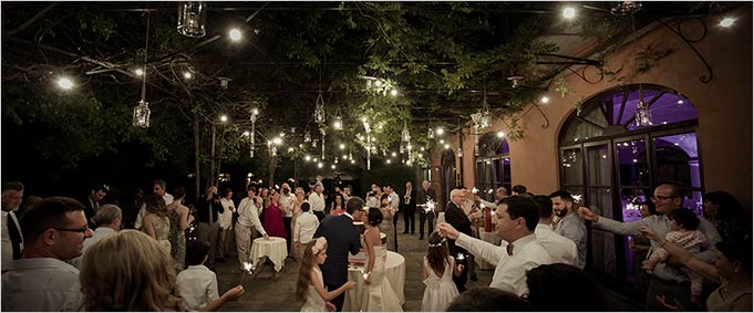 The cutting of the cake was planned back outdoor under a lovely pergola with fairy lights and dozens of sparklers! Cocktail bar was open and the dances could start!