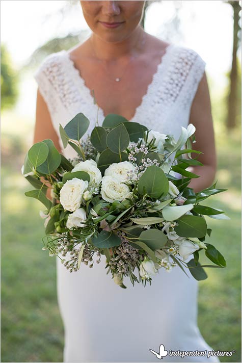 Laura was simply stunning in her laces dress with a romantic loose and country chic bridal bouquet in green and white.