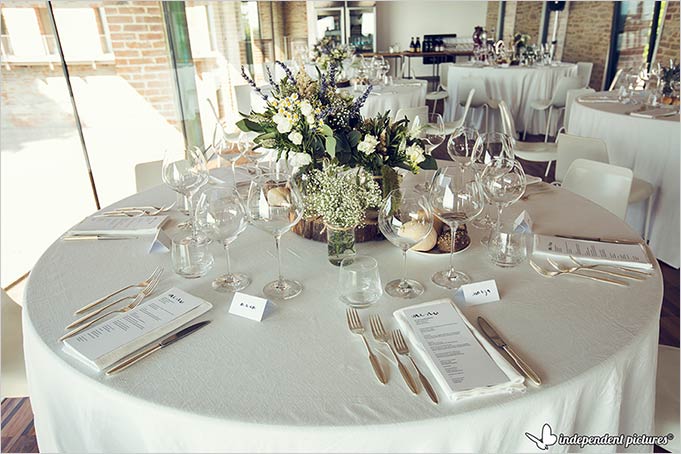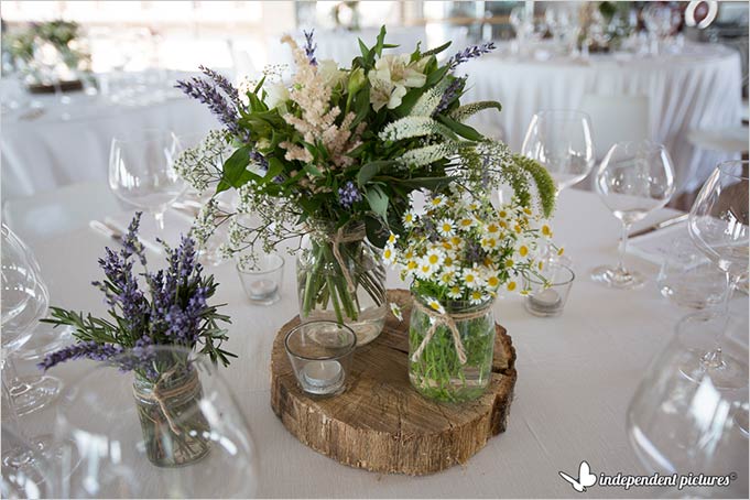 On the tables small and country chic white and green centrepieces in maison jars that perfectly matches Laura bouquet and style.