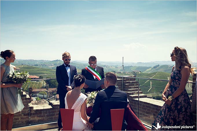 Day was stunning clear and hot so we could have the chance to make Laura and Mikael dream come true: a legal civil ceremony on top of Barbaresco Tower!