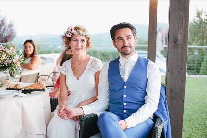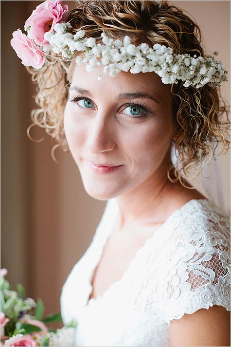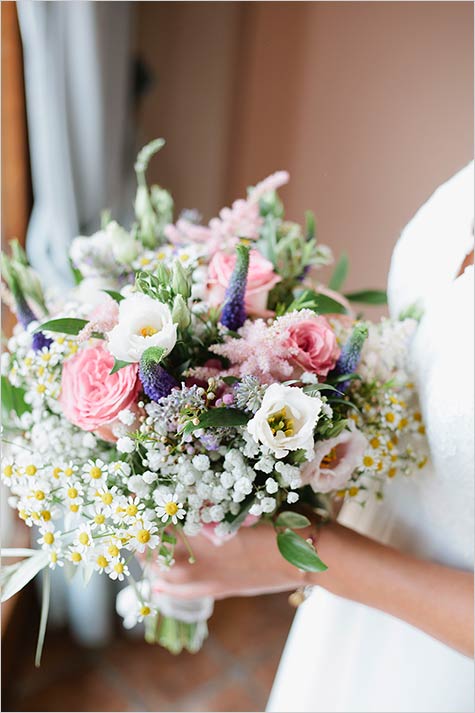 Marie-Julie was simply wonderful in her boho-chic wedding dress matching perfectly meadow flower bridal bouquet and little floral crown she wore on her head.