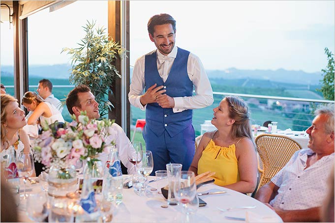 Guests waited for them to a local restaurant overlooking Langhe hills not far from Grinzane Cavour.
