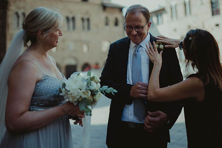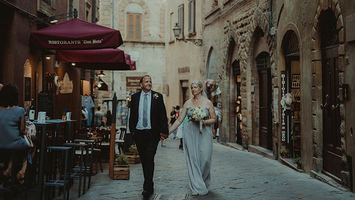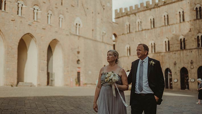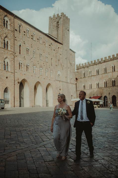 Once ready they reached Volterra town hall ready for their romantic elope in Tuscany.