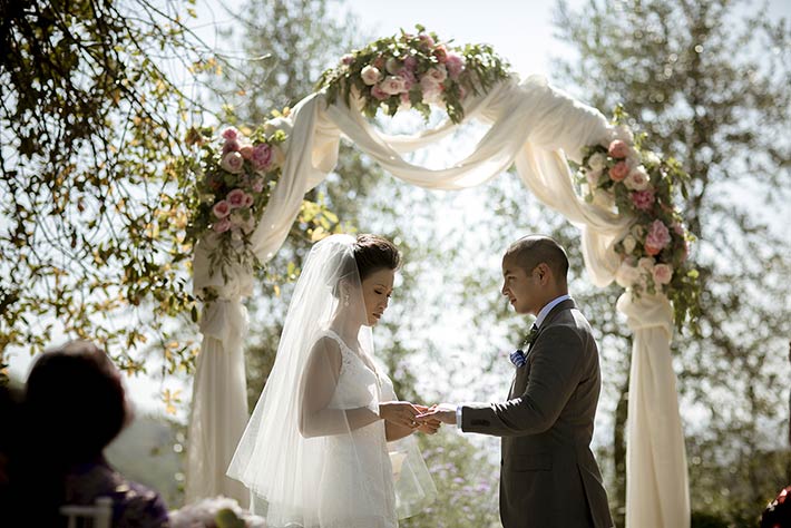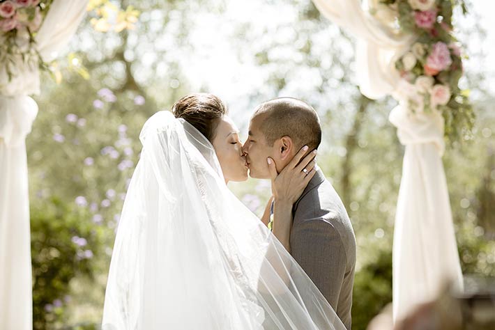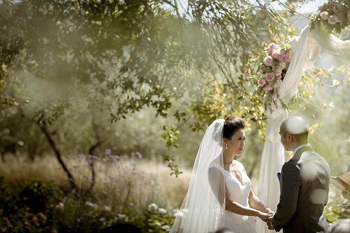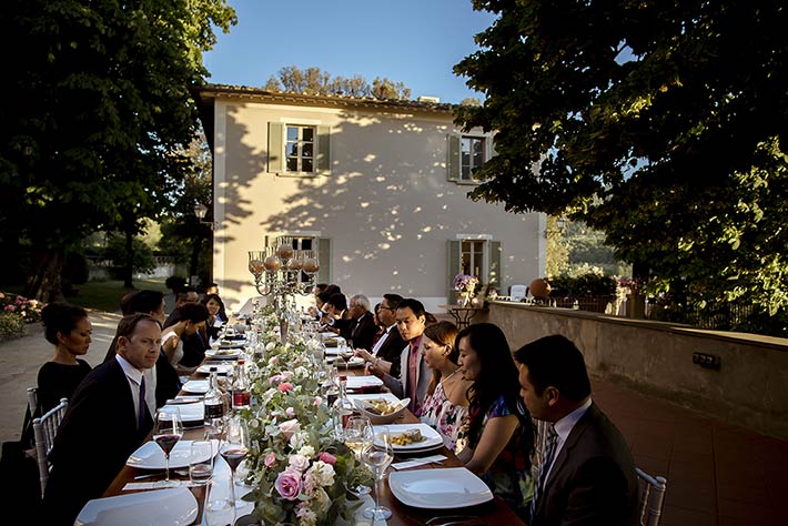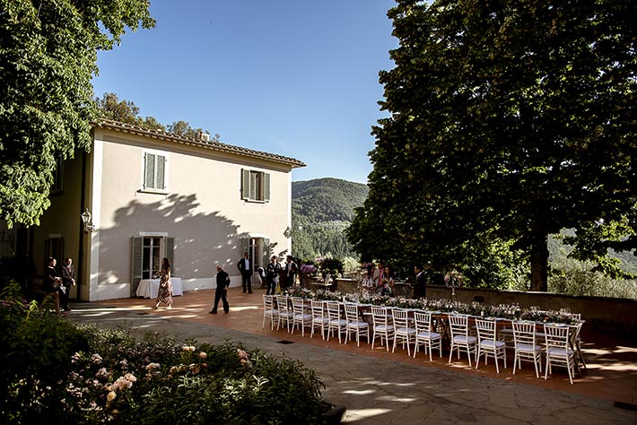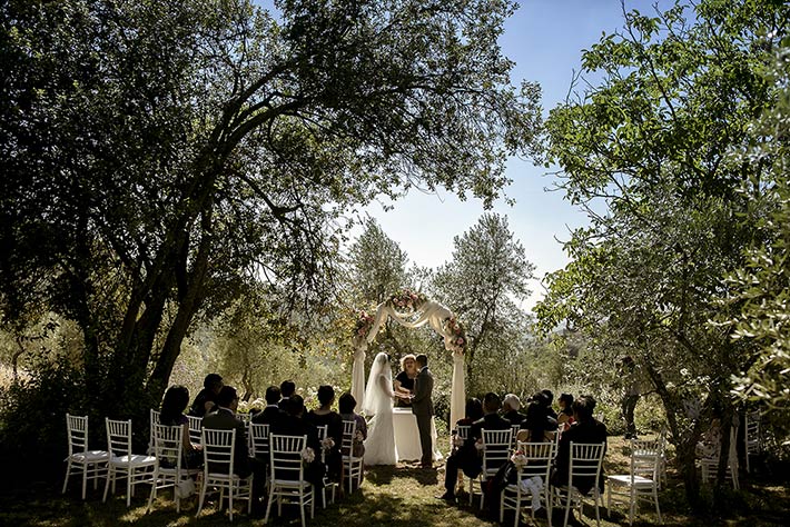 Letโs get back to Robin and Donaldโs wedding. They decided to celebrate their wedding symbolic ceremony in the garden of the venue. Jo Bertolino form Tuscan Pledges, a talented celebrant we usually work with helped us to create a magic moment for them.