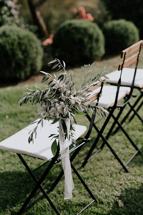 The wedding ceremony was simply decorated in traditional Tuscany style with olive branches and garden white flowers. Ceremony was performed by Jo Bertolino from Tuscan Pledges with the background of the romantic sound of a violin.