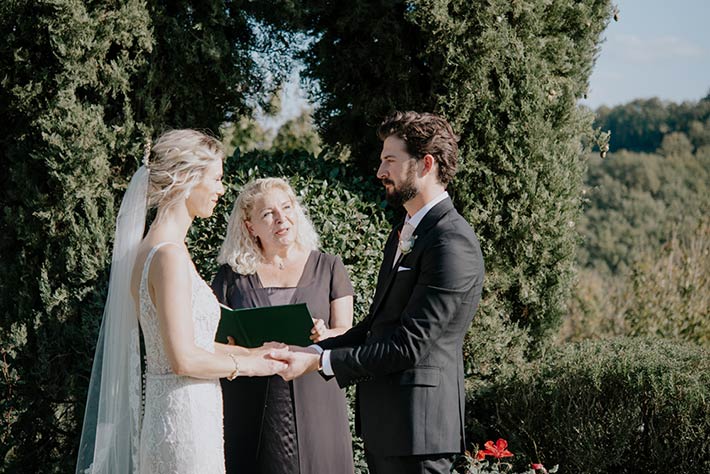 Ulrike and Joshua decided for romantic symbolic wedding ceremony at the villa. We planned it in the early afternoon in the lush garden, facing the rolling hills of Tuscany: a marvellous landscape.