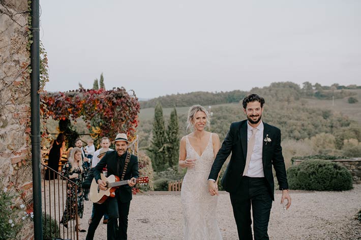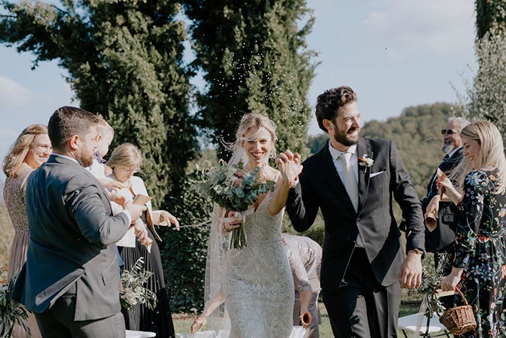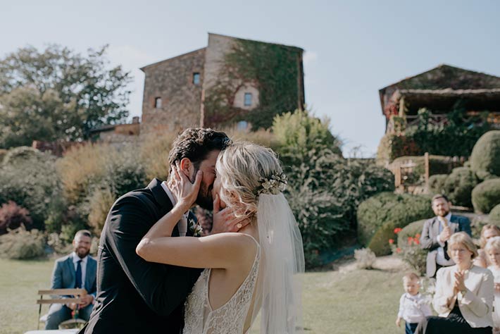 A wedding toast and after that the party could begin! โจItโs been a relaxed, elegant and fun wedding full of joy and happiness. It was the real essence of a destination wedding in Italy: a romantic wedding in San Galgano, Tuscany.
