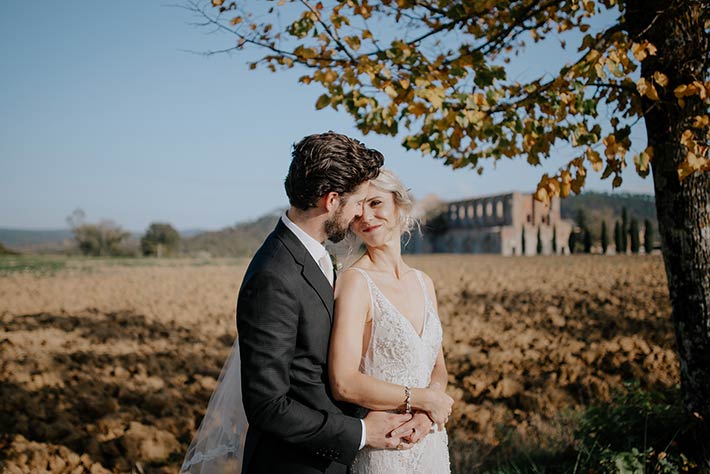 Today I wish to talk to you about the wedding of Ulrike and Joshua a lovely couple coming from US. Ulrike is originally from Germany and Joshua comes from Us. They decided to tie the knot in Italy in late September with a romantic wedding in San Galgano, Tuscany.