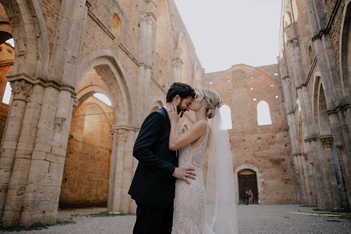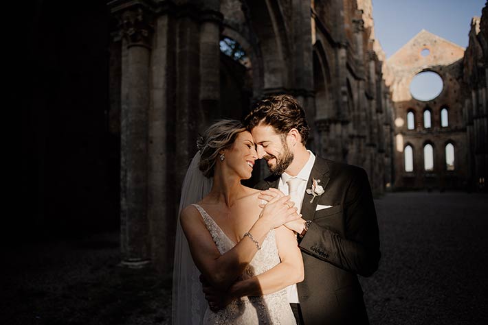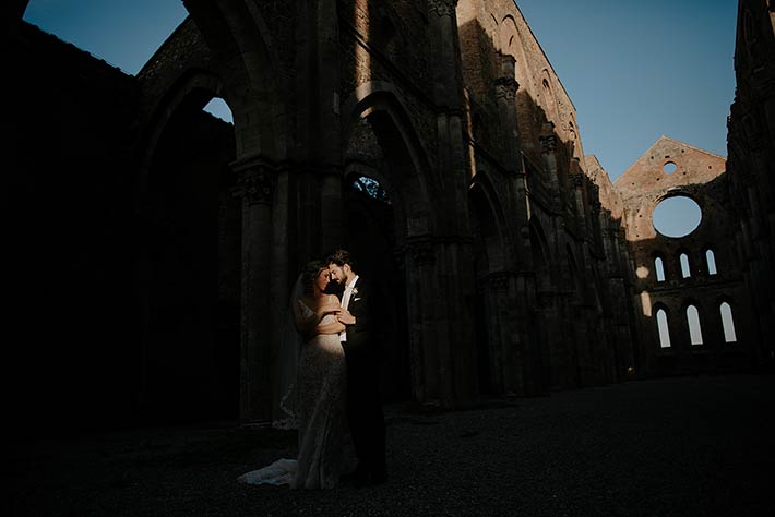Wedding in San Galgano: photo session at the โAbbey without the roofโ in Tuscany