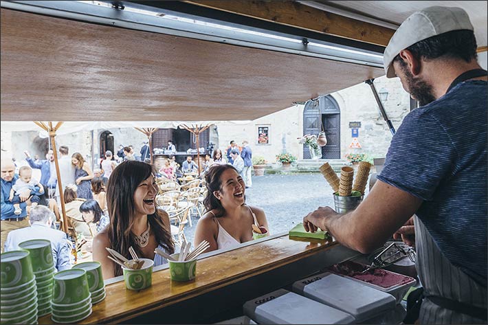 The whole group had a toast to follow and a rich aperitif in the courtyard of the monk residence where a big gelato van waswaiting for them serving homemade delicious Italian gelato.