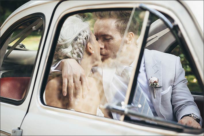 Lloyd and Kim had a vintage Fiat 500 car waiting for them outside the abbey. They left their guests having a drink to travel in the surroundings Umbria countryside to take some amazing pictures together.