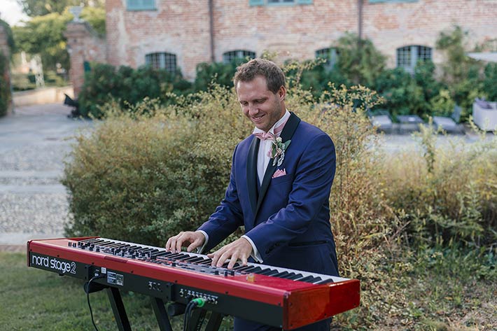 David waited for her and the ceremony could begin. It was moving but also very joyful. Bride and groomโs friend accompanied the ceremony with some great music played with a piano.