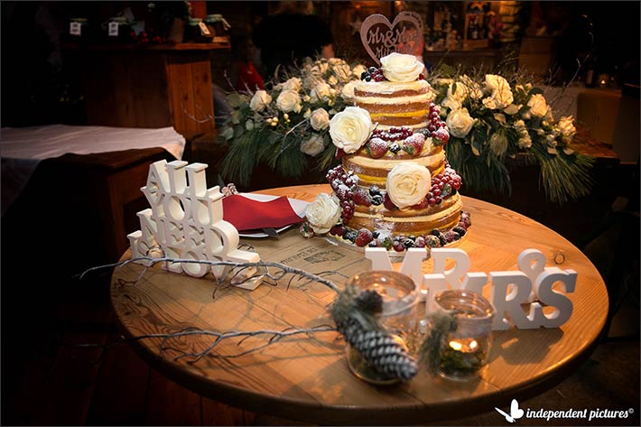 Wedding dinner was served in the restaurant of the hotel, still overlooking the mountains and its valleys. It was a gourmand dinner with valley dishes and unique local Piemonte wines. Clare and Rob wanted a naked wedding cake to cut at the end of the reception.